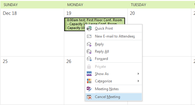 You’re ready to send! Should you need to cancel your meeting you simply go to the room calendar right click on your event and select Cancel meeting..